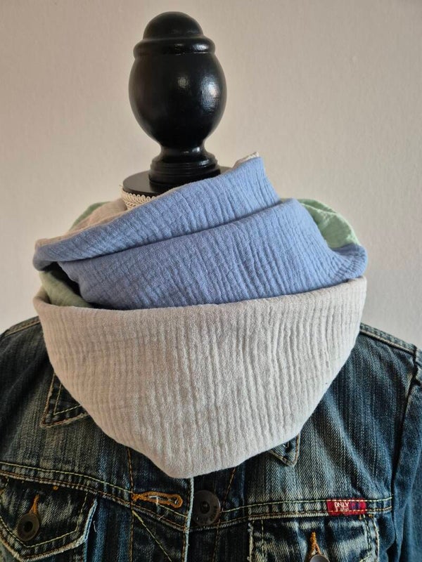 Musselin Loop Damen – Mintgrün, Hellgrau & Blau | Schlauchschal für Frühling, Sommer, Herbst & Winter
