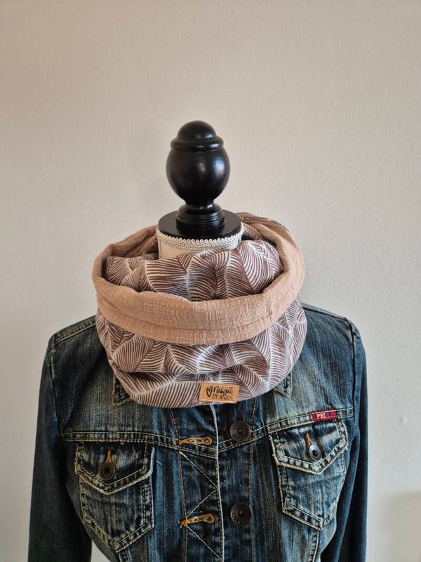 🍁 Musselin Loop mit Federn – natürlich, weich & stilvoll