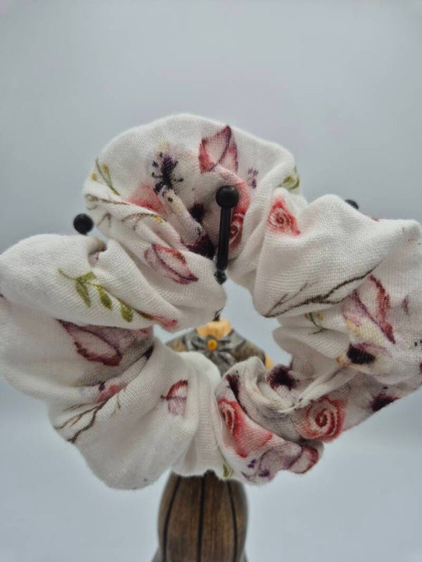 Scrunchie aus Musselin – Blumenmotiv | Haargummi & Zopfhalter für Damen & Mädchen