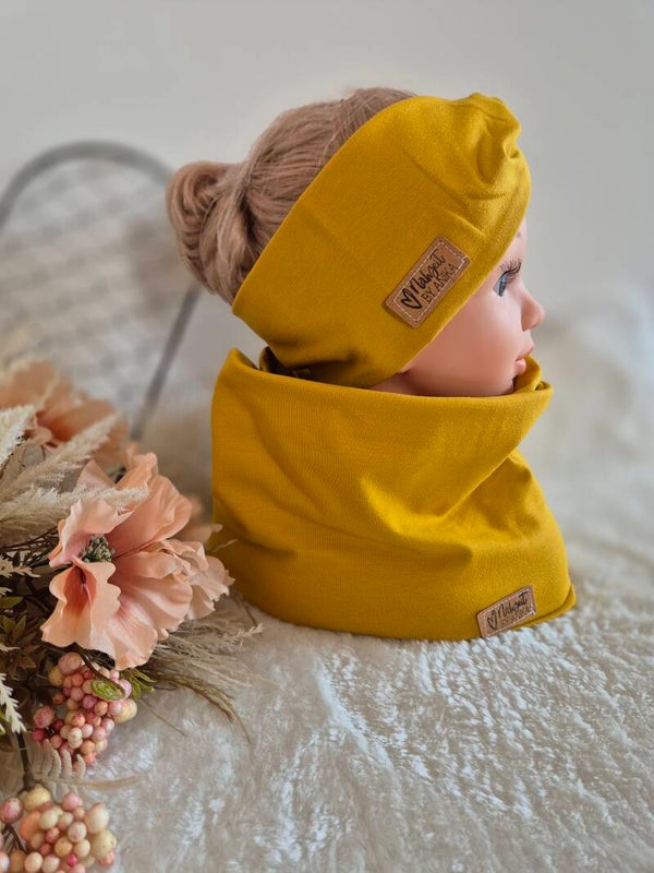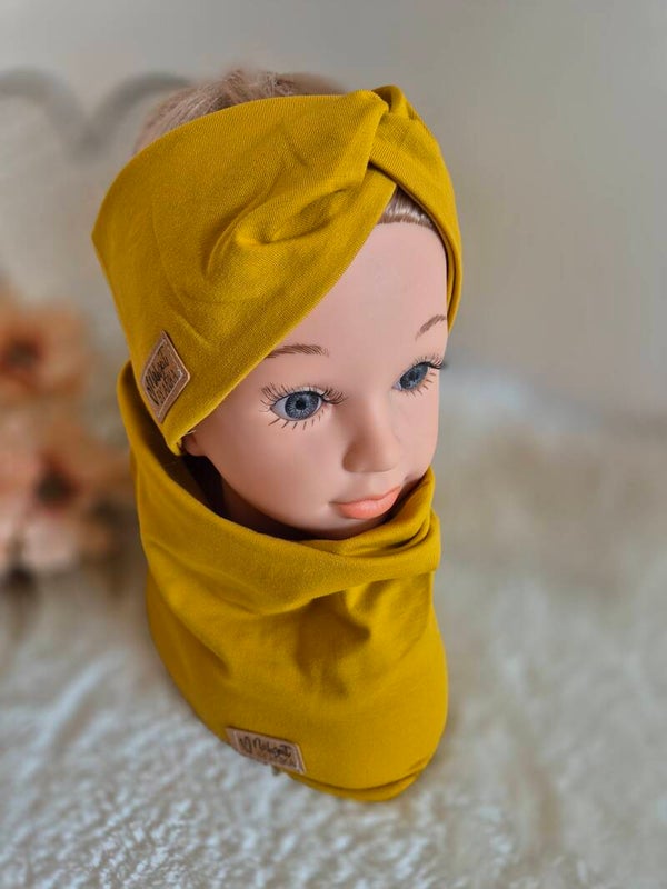 Stirnband mit Loop Senfgelb – Knotenstirnband & Haarband | Stylisches Accessoire für Damen & Mädchen