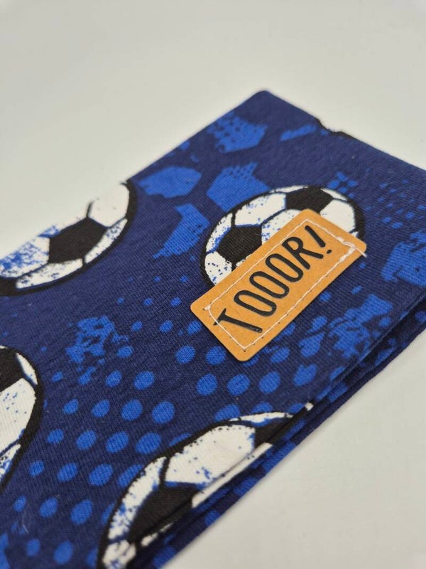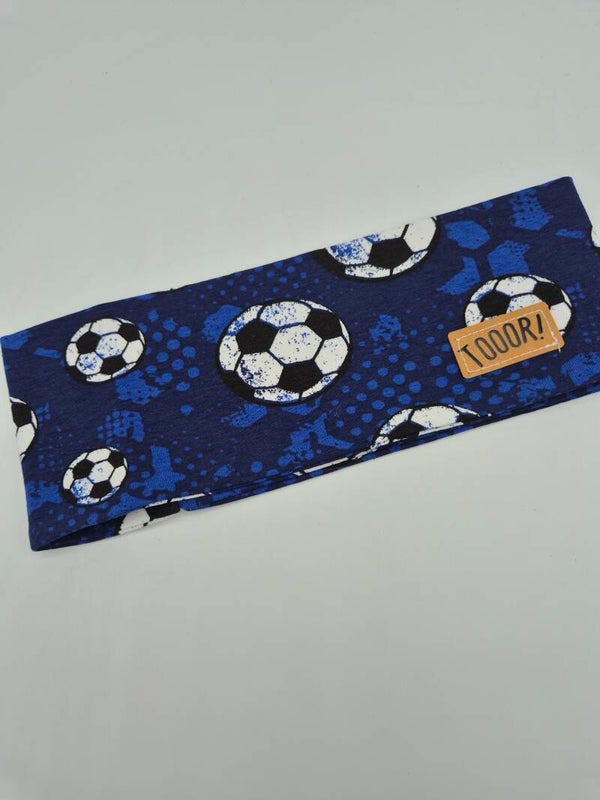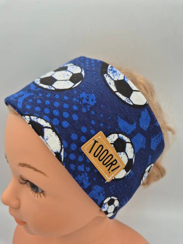 Breites Stirnband Blau mit Fußball – Haarband für Jungen & Mädchen, handgefertigt nach Kopfumfang