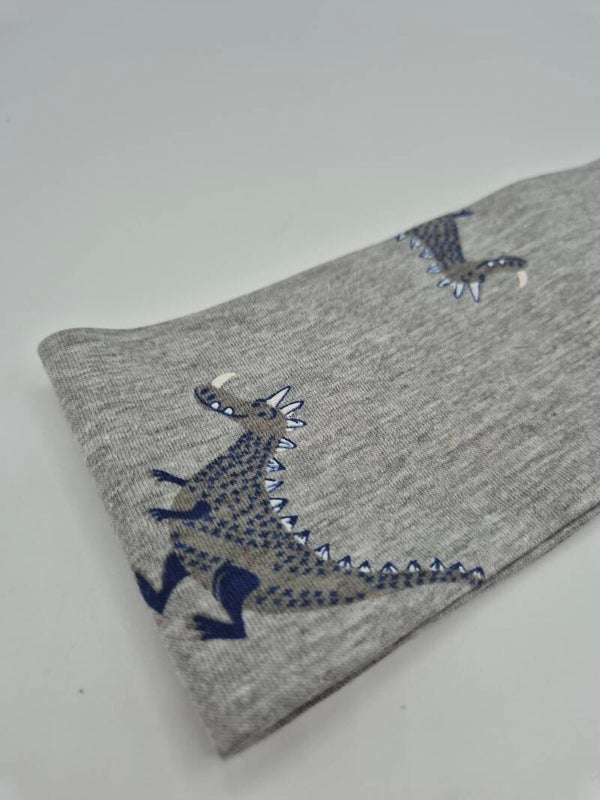 Breites Stirnband Hellgrau mit Dinosaurier – Haarband für Jungen & Mädchen, individuell nach Kopfumfang gefertigt
