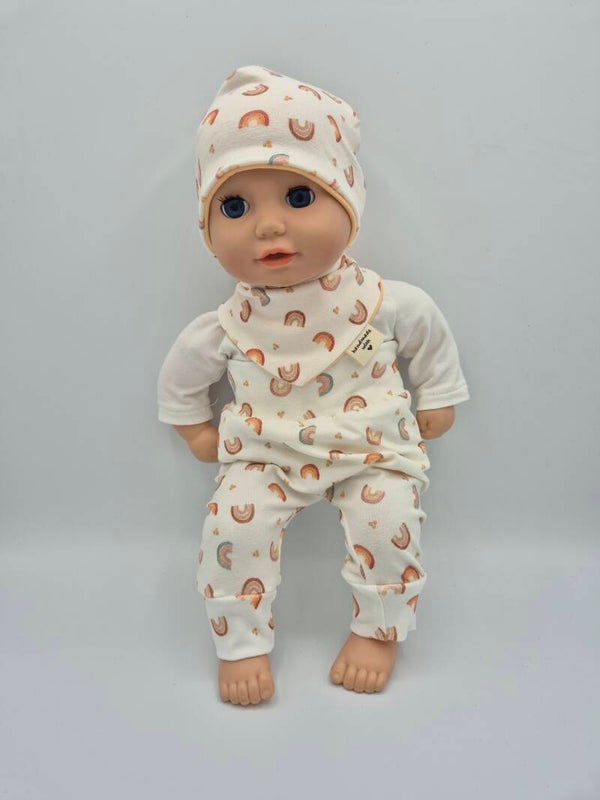 Dieses liebevoll handgefertigte 5-teilige Puppenoutfit ist perfekt für Puppen in der Größe 36–38 cm (z. B. Baby Annabell 36 cm) und verwandelt jede Puppe im Handumdrehen in einen stylischen Hingucker.