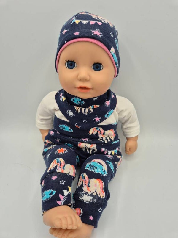 Dieses liebevoll handgefertigte Puppenoutfit ist das perfekte Set für Puppen in der Größe 36–38 cm (z. B. Baby Annabell 36 cm). Das 4-teilige Set bietet Spielspaß und Style für kleine Puppenmamas und Puppenpapas!