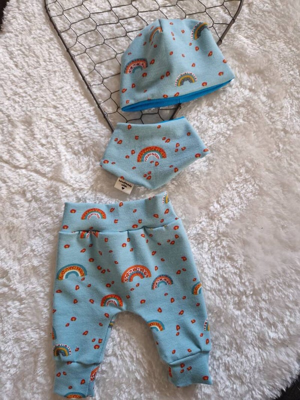 Handgefertigte Puppenkleidung 28–45 cm Hellblau Regenbogen Wendejacke Puppenset Geschenk Geburtstag Weihnachten